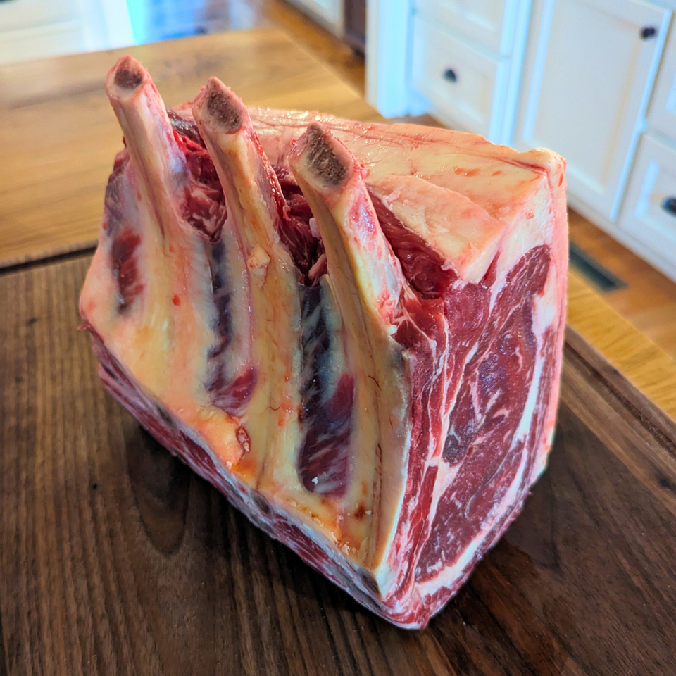 Cut from the same muscle as the Ribeye, the Standing Rib Roast is big, bold, and beautifully marbled. It's basically the roast before it is cut into Ribeye Steaks. Cook it low and slow “Prime Rib” style, or slice into steaks after roasting. Either way, you’re ruling the table.